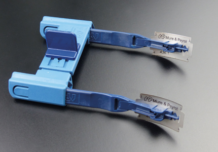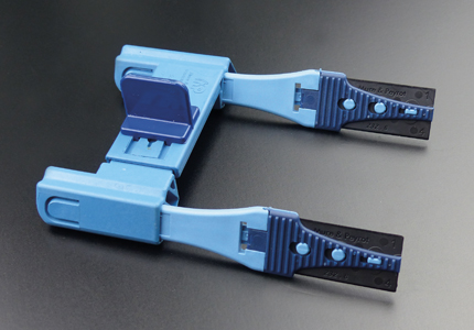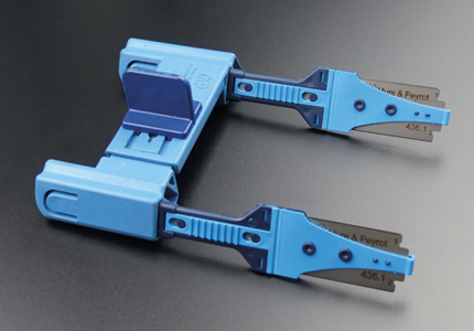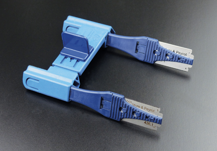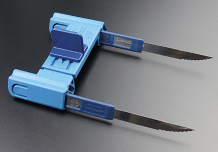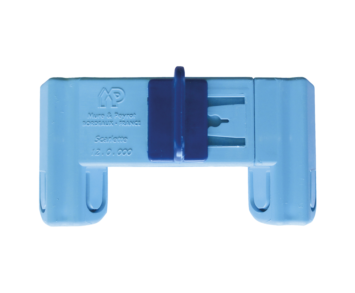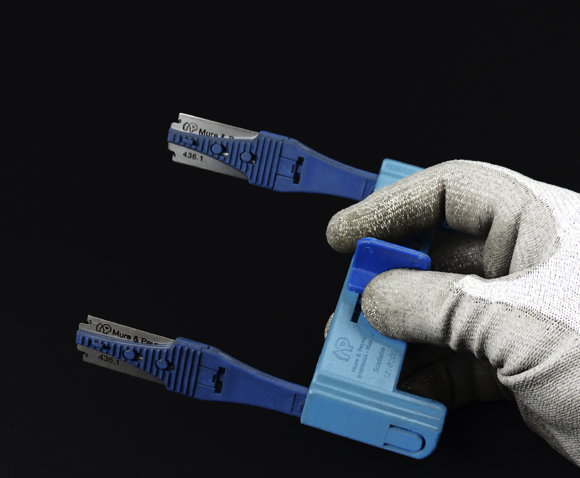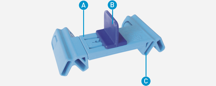 A : Can be spaced from 8 cm to 11 cm. B : Handle for scoring. C : Knive insert.