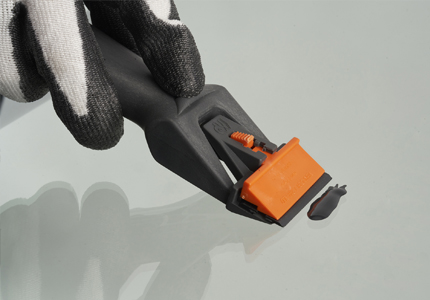A : Easy blade change by pressure. B : Can be hung from the Zicou. C : Slider to activate blade protection at rest.