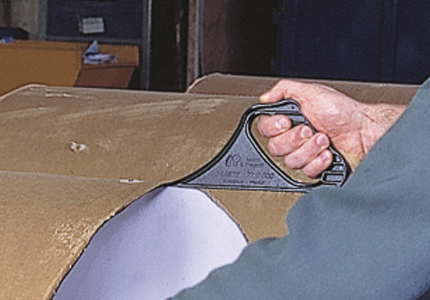 A : Ergonomic and fine tip in the shape of a duck beak. B : Ergonomic handle for more comfort and good handling. C : Long support area.