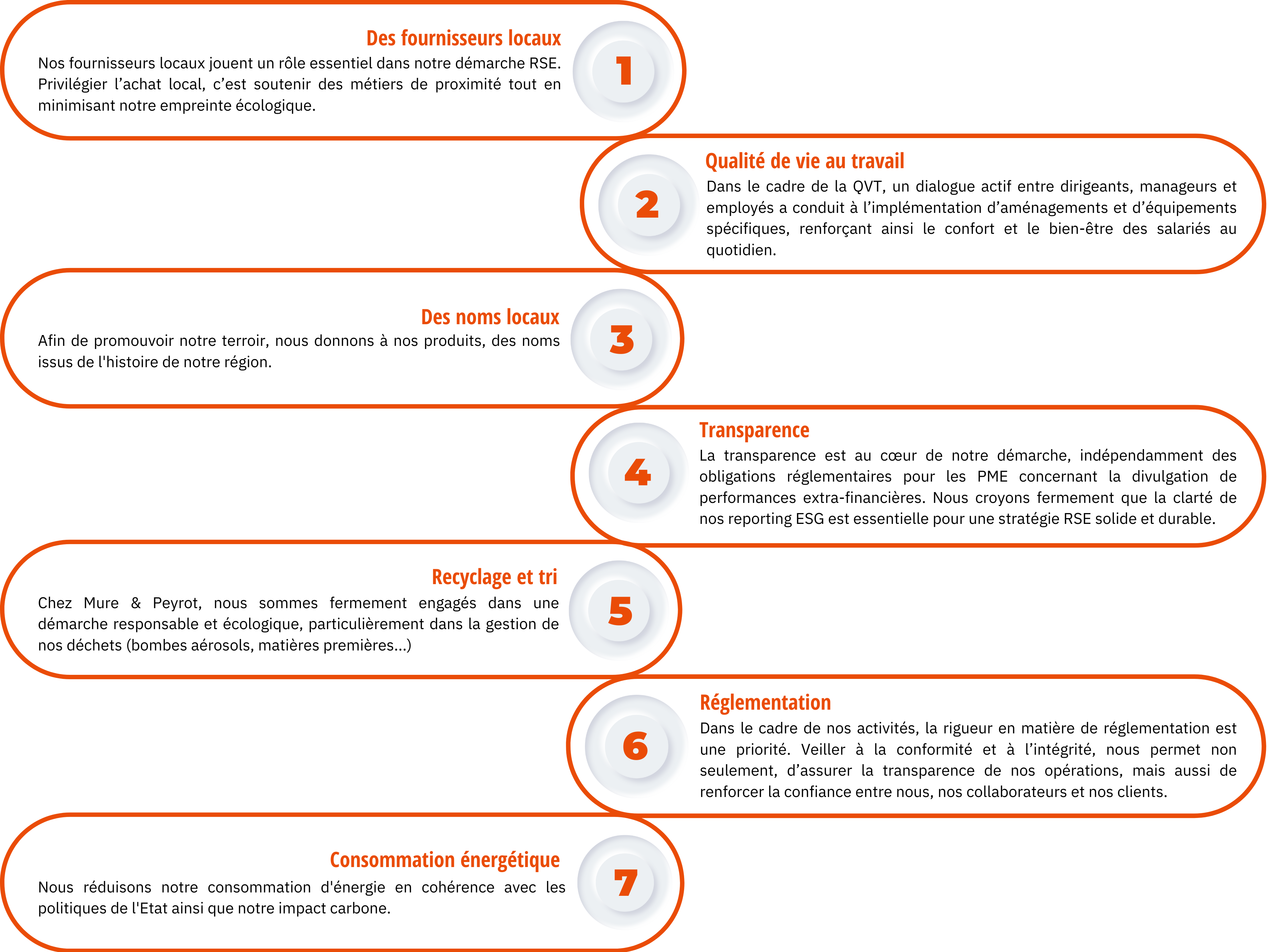 En tant qu’acteur Mure & Peyrot s’engage à travers des actions concrètes, permettant d’améliorer ses performances et de répondre aux exigences de nos clients et aux attentes de nos parties prenantes.