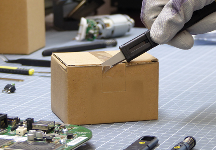 Sécurité : la lame est entièrement rétractable par ressort lors du relâchement du curseur.