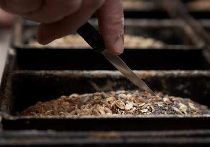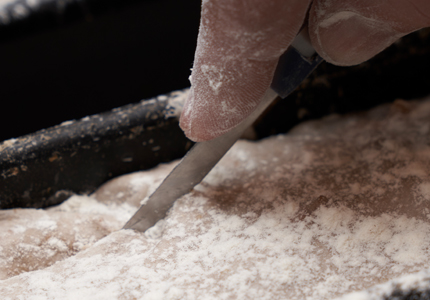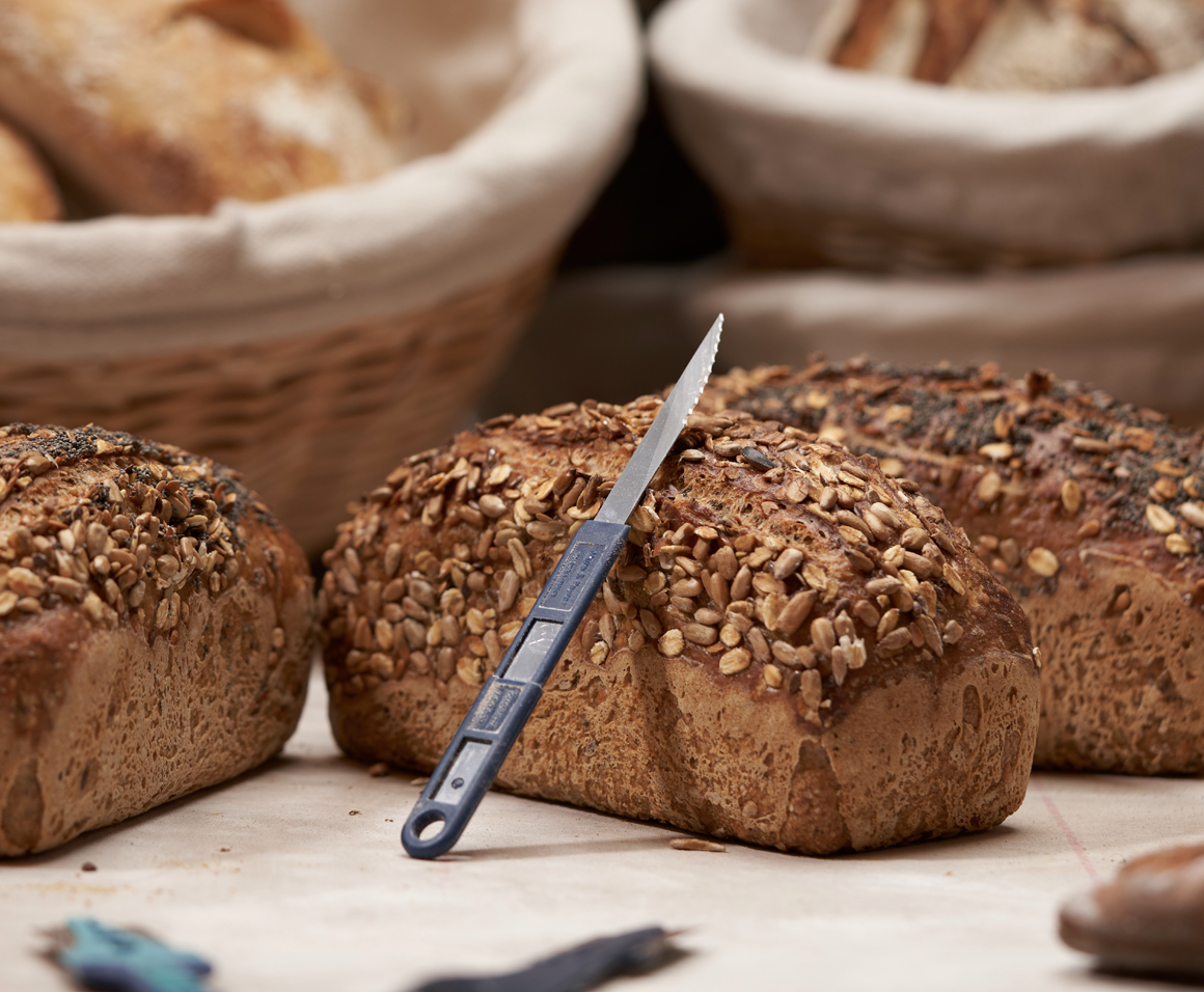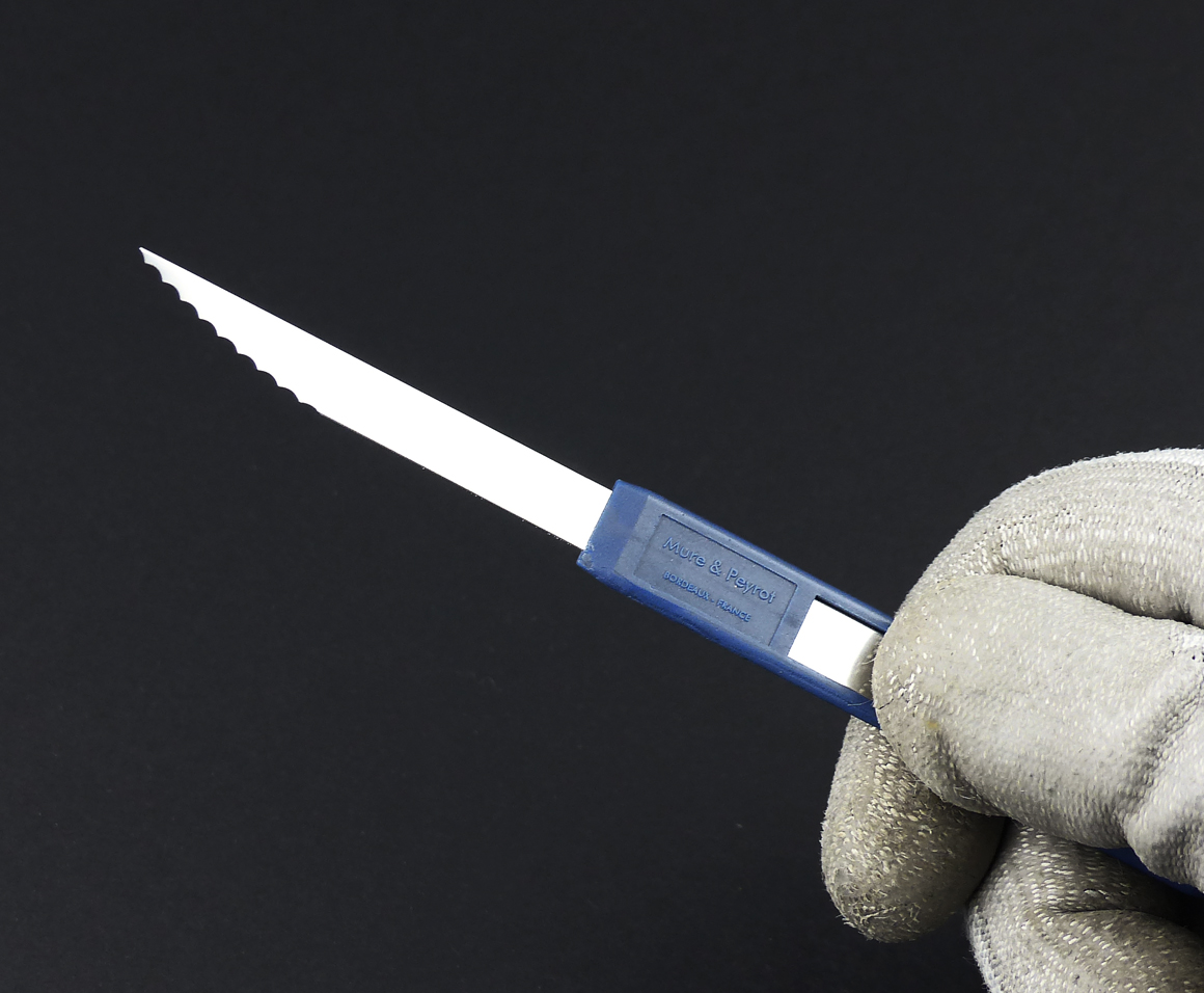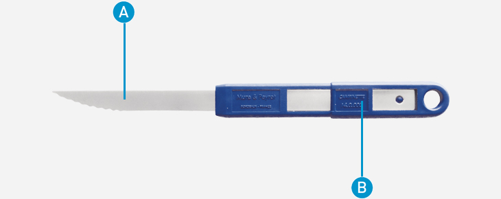 A : Lame Campinox. B : Manche pour lame, peut servir également de « range-lame ».