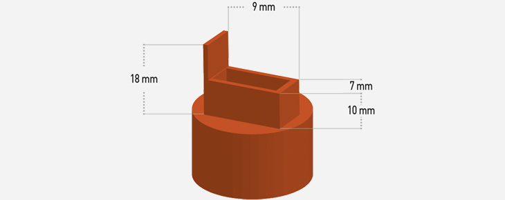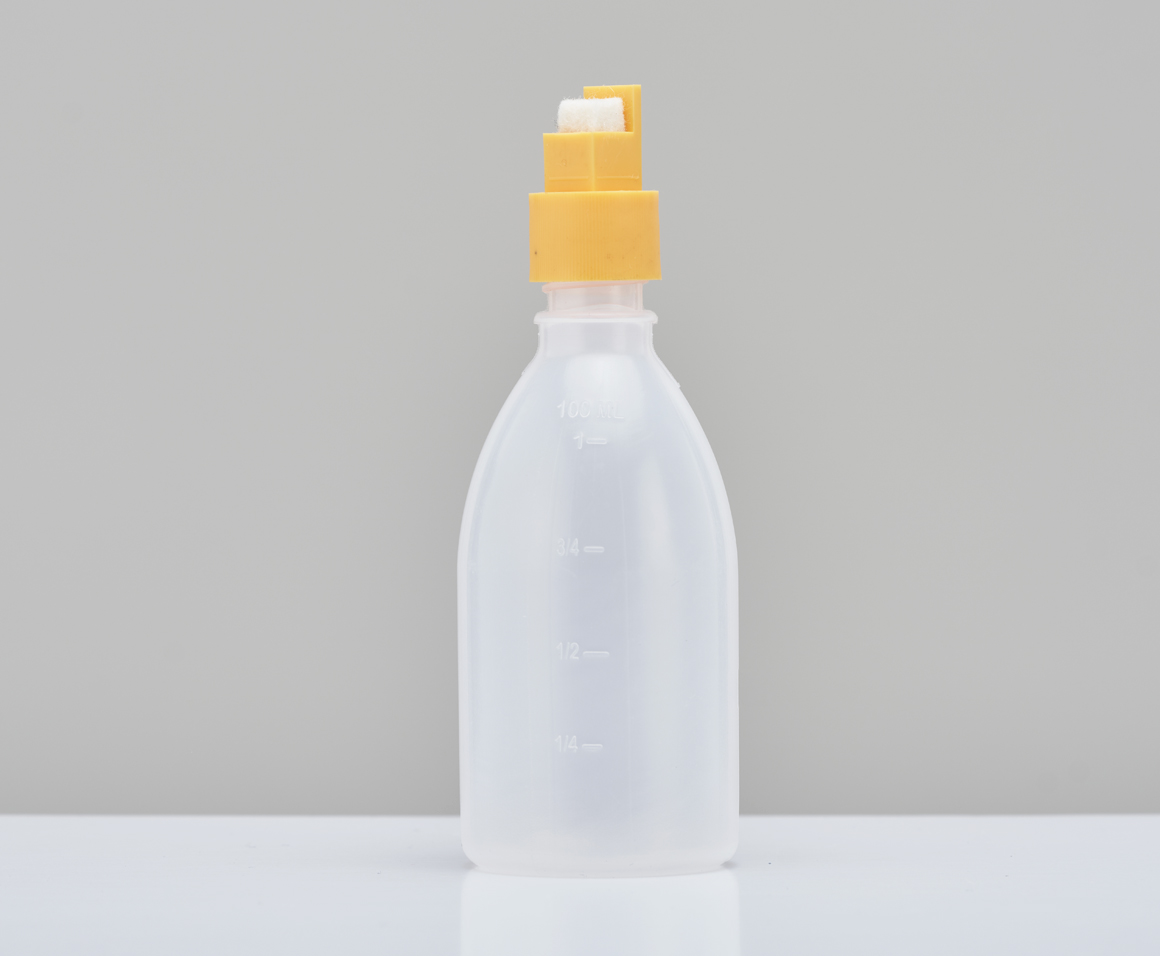 Il permet de régler la largeur de bande à déposer. Muni d’un trou intérieur pour l’écoulement du produit. La double jupe améliore l’étanchéïté et la tenue sur la bouteille.